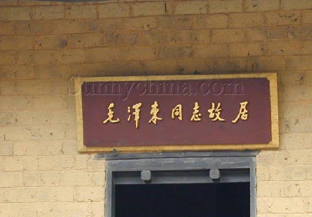 毛澤東故居 名上屋場,坐落在韶山風景區(qū)-茂林修竹、青翠欲滴的小山沖中。房屋系泥磚青瓦,土木結構,坐南朝北,背山面水,是南方常見的"一擔柴"式普通農家住房。故居東頭十三間半瓦房,是毛澤東家的。西頭五間半磚茅房是鄰居的。1893年12月26日,毛澤東誕生于此,并在此度過了童年和少年時代。在長期的革命生涯中,他曾幾次回故鄉(xiāng)。1925年偕夫人楊開慧到韶山開展農民運動,建立了中共韶山支部。1927年回鄉(xiāng)考察農民運動。1959年回到闊別了2年的故鄉(xiāng)探望,寫下了著名詩篇《七律o回韶山》。1966年是毛澤東最后一次回到韶山。1929年4月,國民黨沒收了毛澤東在韶山的全部房屋和財產,故居受到嚴重破壞。1950年以后經多次修葺恢復原貌。現為全國重點文物保護單位。1982年經黨中央批準,將"舊居"改為"故居"。故居門上"毛澤東同志故居"七個黑底鎦金大家為鄧小平題寫。室內陳設基本上按照毛澤東當年在此居住時的原樣布置,有些用具系原物。故居后院臺地上下有毛澤東少年時代勞動過的田地、禾場。屋前荷花塘和南岸塘相毗鄰。故居附近有南岸、毛氏宗祠、毛震公祠等革命遺址和毛澤東同志紀念館、毛澤東圖書館、毛澤東紀念銅像等建筑。