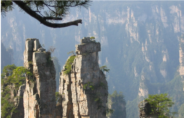 張家界以其得天獨厚的旅游資源聞名于世。以中國第一個國家級森林公園張家界和天子山、索溪峪兩個自然保護區組成的武陵源風景區面積達369平方公里,區內以世界罕見的石英砂巖峰林峽谷地貌為主體,集桂林之秀、黃山之奇、華山之險、泰山之雄于一體,藏賂、橋、洞、湖、瀑于一身,有“擴大的盆景、縮小的仙山”之美稱。