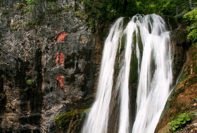 泄憤崖瀑布,是景區(qū)內(nèi)最大的瀑布,達百米以上,有三級所構(gòu)成,水勢分飛、急、慢。最高的一級是虬龍狂奔,中間的是虬龍泄憤,最低的是余怒未消。站到這里,你可領(lǐng)略到氣浪撲面而來。倘若是晴天水霧可彌漫到30米之外。這里的負氧離子的含量特別高,每立方厘米的含量達到68000個。在這里做個深呼吸可以洗漬心肺的。特別是愛抽煙喝酒的男士,更要抓住大自然賜予健康的機會,做做深呼吸,這樣便于血流減慢、心跳負擔減輕。緊張的神經(jīng)系統(tǒng)可松弛下來,人們的嗅覺,聽覺和思維活動的靈敏也增加了許多。不僅如此,如果有什么不滿的話,可以在這里盡情發(fā)泄的,這也是個免費的發(fā)泄場所,因此稱做為泄憤崖。