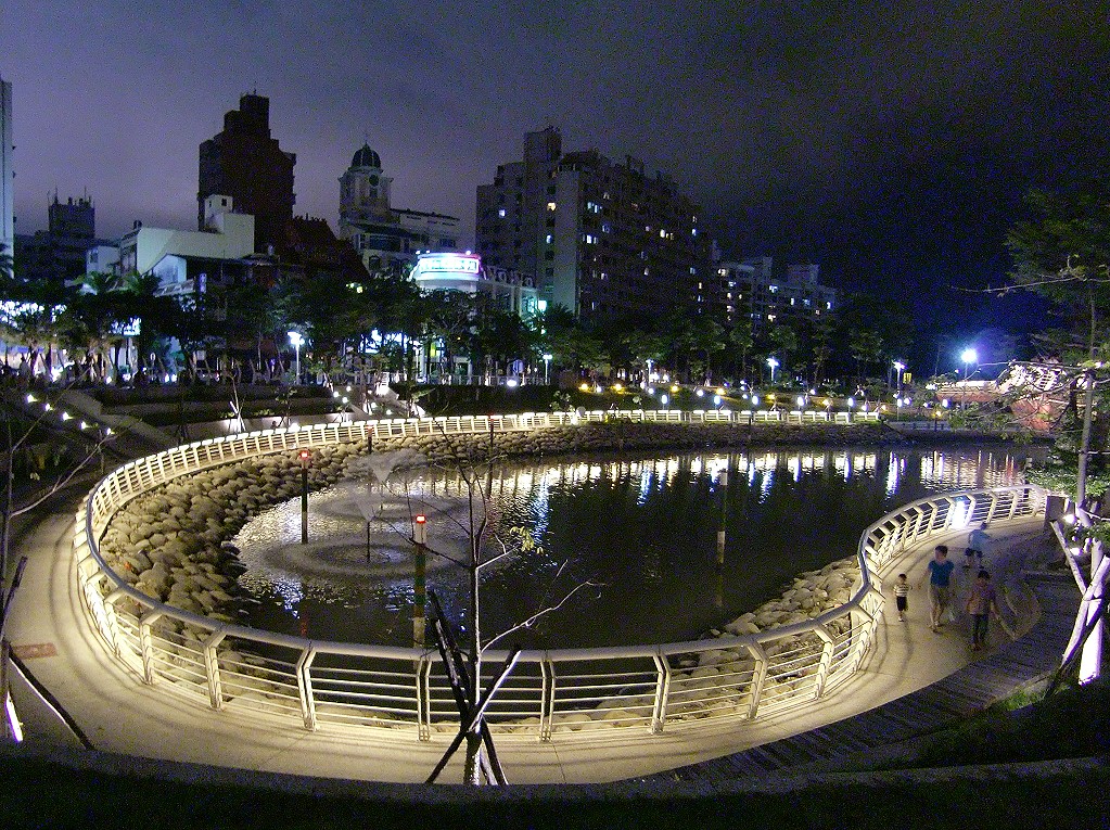 七賢橋:在「冥想欄桿」旁,輕輕松松把手肘架在上頭,托腮冥想,就可以打發夏日午后時光。其間老榕樹蒼勁 有力,庇蔭過客,東岸一座年逾半百的老汲水井,可以讓孩子們一窺阿嗎時代的地下水來源,入夜后,牛郎織女加上十二星座的星光親水臺,更添浪漫。