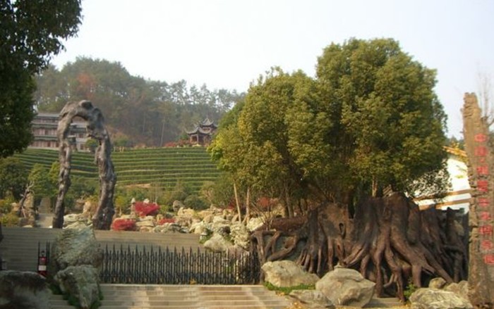 中國•根博園地處浙江省西部,錢塘江源頭--開化縣,毗鄰黃山、千島湖、三清山,占地360余畝、由衢州醉根藝品有限公司投資4.5億開發(fā),工藝美術(shù)大師徐谷青先生精心創(chuàng)作,以盆景、奇石、根藝、園林古建構(gòu)成恬靜自如、天人合一的畫卷,匯聚各類植物、名貴樹種160多種,有貓頭鷹、山雀鷹、長尾藍(lán)雀、紅嘴相思鳥、白頭翁、畫眉等36種鳥類常年在此棲息,主要有福門祥光、中國根雕佛國、中國根雕博物館、中國根雕歷史人物博物館等二十多個(gè)景點(diǎn),陳列盆景奇石作品4000余件,佛儒道、民間神話傳奇、歷史風(fēng)云等系列大型根藝作品2000余件,最大的有40余噸!巨型根雕五佰羅漢更是世界之最、華夏一絕,此外還展示根藝文獻(xiàn)資料、根藝大師代表作,工藝流程和醉根文化等,是一部根藝美術(shù)的四庫全書,堪稱世界根雕藝術(shù)之都!并建有浙江省首批生態(tài)環(huán)境教育示范基地、中國詩歌創(chuàng)作基地、浙江省民間文藝家采風(fēng)基地、開化縣愛國主義教育基地、浙江省婚紗攝影首選景點(diǎn),浙江省文化建設(shè)示范點(diǎn)、衢州市科普教育基地等,這里的美,美在親近和諧、回歸自然,奇在文化與生態(tài)的珠聯(lián)璧合,它的建成書寫了世界園林的奇跡!具有“天下第一奇園”的美譽(yù)!