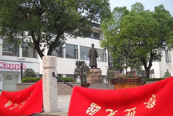 魯迅文化廣場(chǎng)上臺(tái)階層層疊疊,紅花綠葉相間,草木蘢蔥。整個(gè)廣場(chǎng)的路面鋪著青石板,突出了紹興的傳統(tǒng)風(fēng)貌。廣場(chǎng)府河一線(xiàn)還構(gòu)筑有水鄉(xiāng)典型的河埠場(chǎng)景,府河水面上停泊著兩只精致的烏篷船。廣場(chǎng)周?chē)母綄俳ㄖ宦煞抡战B興民居的傳統(tǒng)風(fēng)格,白墻黑瓦,素靜潔凈,所不同的是采用了現(xiàn)代建筑材料,在建筑物的外形上融入了一些現(xiàn)代審美意識(shí)的構(gòu)圖,從而更富時(shí)代氣息。廣場(chǎng)氣氛既莊嚴(yán)凝重,又活潑歡快,體現(xiàn)出紀(jì)念性廣場(chǎng)與文化休憩場(chǎng)所的共性。魯迅文化廣場(chǎng)的東側(cè),版權(quán)所有山東聊城聊之旅國(guó)際旅行社有限公司,轉(zhuǎn)載必究!有一塊高1.12米、長(zhǎng)3.30米的花崗石巨碑,鑲嵌在方石砌成的堅(jiān)壁之中。碑額題名為《魯迅銅像贈(zèng)款名錄》,是由“紹興市魯迅銅像籌建委員會(huì)”敬立。碑上刻著“單位千元以上、個(gè)人百元以上”贈(zèng)款者的姓名。上面一排排來(lái)自四面八方、國(guó)內(nèi)海外的名字,昭示著一個(gè)無(wú)可否認(rèn)的事實(shí):熱愛(ài)魯迅、崇敬魯迅的人們遍布天南海北。魯迅文化廣場(chǎng)于1991年紀(jì)念魯迅誕生110周年之際正式竣工開(kāi)放。