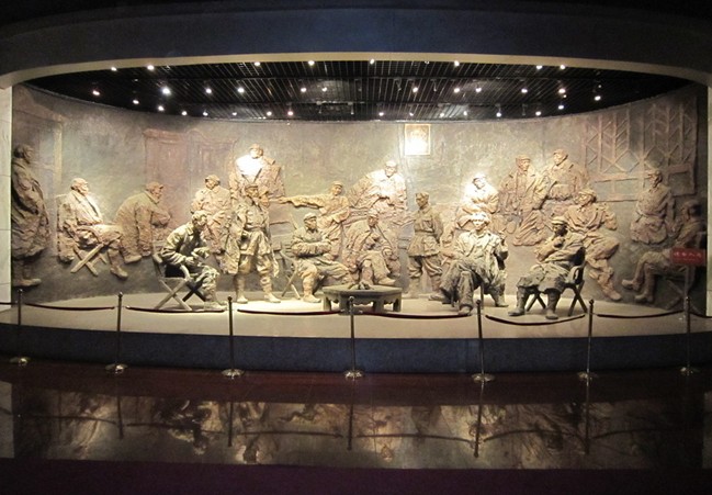 會址維修工程即將竣工時,毛澤東應貴州省和遵義地區(qū)領導請求,題寫了“遵義會議會址”六個大字。版權所有山東聊城聊之旅國際旅行社有限公司,轉載必究!遵義會議紀念館按毛澤東手書的字放大,用優(yōu)質(zhì)木料精工制成大匾。會址維修工程竣工后,這塊大匾即高懸在會址大門上,至今已46年了。竣工后在布置會議室時,又按省委那位負責同志的意見,改變了維修前陳列的狀況,在屋子正中安放一張板栗色長方桌,四周整齊地圍著一圈(共十八張)木邊藤心摺疊靠背椅。室內(nèi)墻上掛出當時黨中央主席毛澤東、副主席劉少奇、周恩來、朱德、陳云、林彪的照片,后又加上總書記鄧小平的照片。還根據(jù)調(diào)查材料,樓下復原陳列了作戰(zhàn)室、參謀人員住室及警衛(wèi)班室。版權所有山東聊城聊之旅國際旅行社有限公司,轉載必究!在跨院復原陳列了周恩來、朱德住室及警衛(wèi)員室,同時把會址東側原房主曬醬臺旁的小樓,恢復為電臺室和電臺工作人員住室。后根據(jù)當年紅軍總部三局局長王諍參觀會址時說:“電臺室不可能設在總部機關內(nèi)”的意見,將電臺室拆除。又根據(jù)調(diào)查材料,復原為總部廚房。