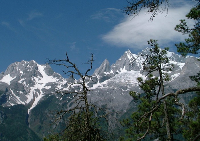 玉龍雪山位于云南省麗江市玉龍納西族自治縣,是中國最南的雪山,也是橫斷山脈的沙魯里山南段的名山。雪山山腰云霧繞,遠望像一條銀白色的巨龍,因此得名。為納西族的神山和聚居地之一;納西族人稱雪山為“波石歐魯”,意為“白沙的銀色山巖”。雪山南北長35公里,東西寬13公里,共有十三峰,主峰扇子陡海拔5596米。