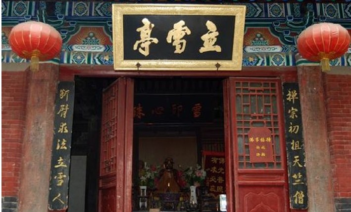 創(chuàng)建于北宋宣和七年(公元1125年),歷代每有修葺,主要構(gòu)件仍為北宋原物。它是河南省現(xiàn)在最古老的一座木石結(jié)構(gòu)建筑,在建筑學(xué)術(shù)上具極高價值。殿門有磚雕對聯(lián):“在西天二十八祖,過東土初開少林。”殿內(nèi)供達摩像,并二祖慧可、三祖僧粲、四祖道信、五祖弘忍。