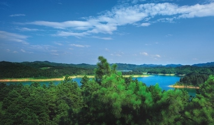 青山游碧水,群島伴浪舞,進入花巖溪景區,首先映入眼簾的是五溪湖,五溪湖由五條蜿蜓曲折的溪流匯聚而成。湖中有大小島嶼數十座,隨湖水的漲落,時隱時現,乘快艇飛躍湖面,群島伴浪起舞尉為壯觀。湖中最大的島有二十穆,現已規劃為優質油茶種植基地。