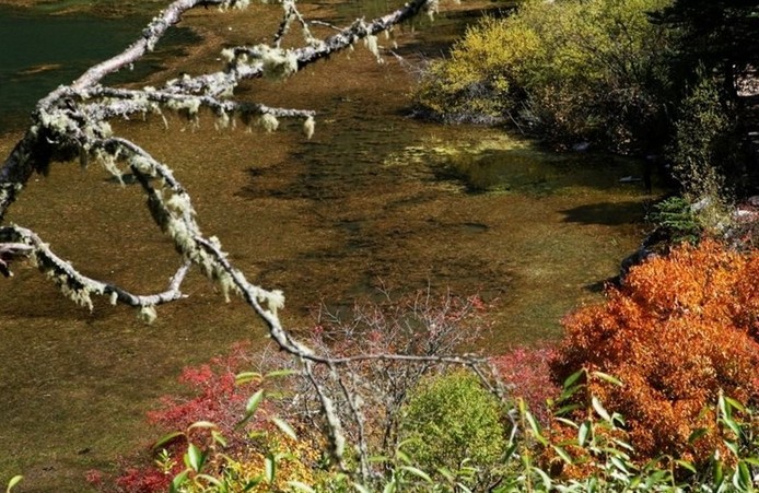 從跑馬山腳左側近泥巴山或駟馬橋處上山,穿過杜鵑花、紅白刺玫花叢錯落的山徑,經吉祥嘛尼堆5處,約6小時,就到了海拔4100米的冰川遺跡--五色海。五色海面積0.11平方公里,三山陡峭環立。東山崖上瀑布飛流,珍珠萬顆直瀉湖中,湖水澄澈似鏡,朝陽初臨,瑞氣四集,飛瀑倒映湖中,玉兔捧佛隱去,陽光五彩繽紛。