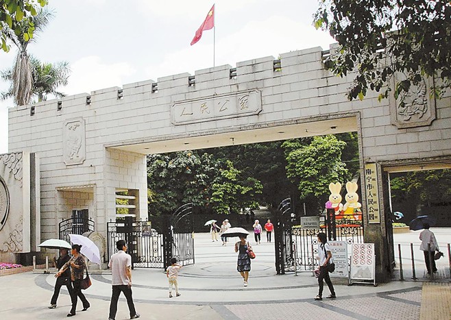 步入園門,順著141級臺階登上望仙坡頂。這就是人民公園的主體。北宋皇佑年間(1049~1054)邕州太守陶弼為紀念狄青、余靖、孫瀉,在此建“三公祠”。后人又增加蘇緘、王守仁、莽吉圖三人,改為“六公祠”。民國二十六年(1937年),兩廣巡閱使陸榮廷為守衛南寧及其家鄉武鳴,拆”六公祠”建鎮寧炮臺,架設大炮一門,射程12,000米。這是一座巨石砌就的二層環形城堡,版權所有山東聊城聊之旅國際旅行社有限公司,轉載必究!炮臺上安置著一尊1890年制造的德國克魯伯大炮,炮臺座腳有一古碑廊。登上炮臺既可俯瞰南寧城全貌,又不免勾起一縷懷舊幽思。