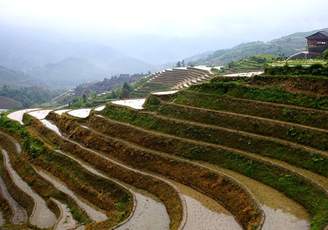 全新的藝術(shù)定位,首創(chuàng)劇場實景藝術(shù)概念,薈萃國家級藝術(shù)主創(chuàng)人員,耗資千萬,精心打造……大型實景歌舞劇《龍脊魂》演藝 2005年4月18日在桂林震撼公演!走進(jìn)龍脊神秘山寨,了解豐富的民族文化,聆聽千年侗族大歌, 欣賞靚麗的民族服飾,擋不住的風(fēng)情,盡在《龍脊演藝》在桂林北部巍峨的群山中,居住著壯、侗、苗、瑤等少數(shù)民族從元代起,他們的祖先就在這里開荒種田,他們勤勞勇敢,不畏艱險,世世代代,墾山造田,數(shù)百年來已形成規(guī)模空前,享譽(yù)世界的“龍脊梯田”,而他們多姿多彩的生活習(xí)俗,也與龍脊梯田一道成為了世人矚目的風(fēng)景畫卷。她們,來自那片古老神奇的土地帶來了美輪美奐的民族服飾和動人的歌謠。他們,從萬頃梯田中走來帶著泥土的芳香、勞作的工具和香醇的米酒。《龍脊魂》演藝以現(xiàn)代一流的燈光、一流的舞美,極具沖擊和震撼力的舞臺音響、燈光效果,將少數(shù)民族歌謠、民族舞蹈及少數(shù)民族生活實景三者進(jìn)行完美融合,從歌、舞、樂多種藝術(shù)形式和多種層面,從創(chuàng)作理念、表現(xiàn)形式和審美視角上進(jìn)行了全新的嘗試,再現(xiàn)了龍脊梯田古樸壯麗的場景,展示了少數(shù)民族用雙手創(chuàng)造龍脊梯田,代代傳承的龍脊精神和品格。