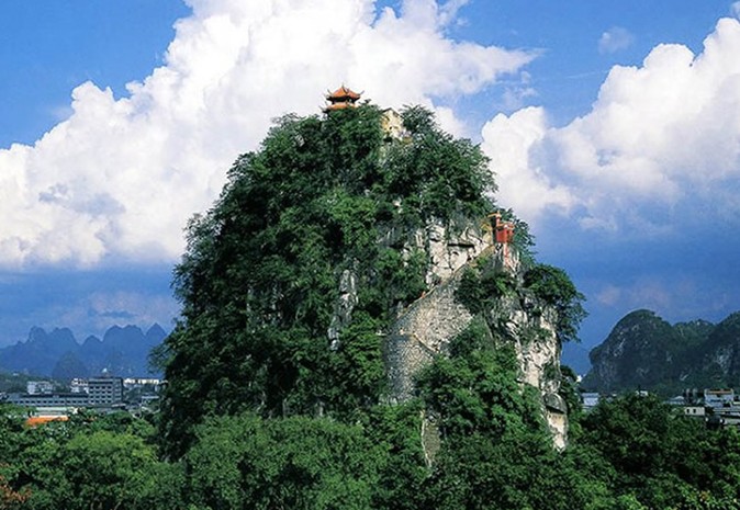 獨(dú)秀峰位于市中心以靖江王城內(nèi),孤峰突起,,陡峭高峻, 氣勢(shì)雄偉,素有“南天一柱”之稱(chēng)。山東麓有南朝劉宋時(shí)文學(xué)家顏延元讀書(shū)巖,為桂林最古老的名人勝跡。顏曾寫(xiě)下“未若獨(dú)秀者,峨峨郛吧間”的佳句,獨(dú)秀峰因此得名。假當(dāng)晨曦輝映或晚霞夕照,孤峰似披紫袍金衣,故又名紫舍山。