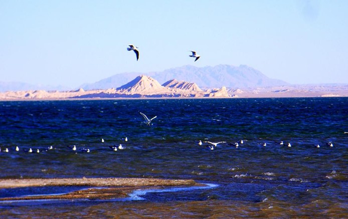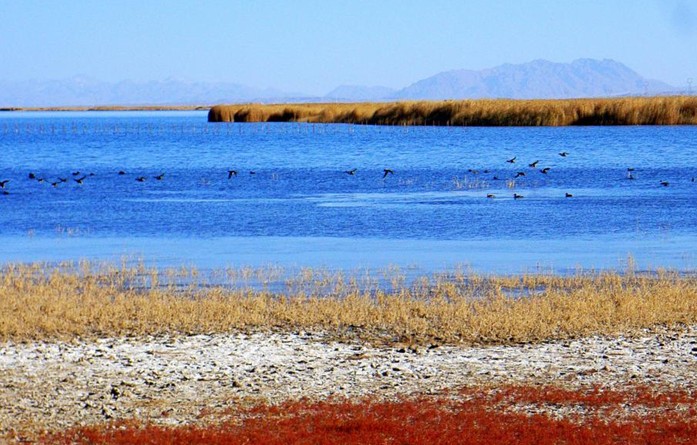 可魯克湖和托素湖雖然相距很近,而且有著相同的生態環境和變遷歷史,然而它們的姿態、風貌和性格卻迥然不同。可魯克湖屬于微咸性淡水湖,湖床低洼不平。巴音河的水常年帶著大量的牛羊糞和其他有機物注入湖內,使湖底變得泥質肥厚,雜草叢生,尤其是浮游生物極其豐富,而這些都是魚類天然的飼料。所以湖中土種湟魚和條鰍屬魚類很多??婶斂撕宄海嫫届o,景色綺麗旖旎。托素湖則是典型的內陸咸水湖,水生動植物和浮游動植物很少,湖的周圍全是茫茫的戈壁灘。托素湖湖面遼闊,湖岸開闊,無遮無攔,晴天時,湖面煙波浩淼,水天一色,蔚為壯觀;大風刮起,則浪濤洶涌,浪花飛濺,拍岸有聲,動人心魄。