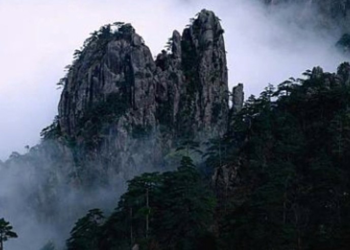筆架山是一座石山,十分陡峭。山巖猶如刀削,看不見行人的蹤跡。山中只有一條埋藏在密林中的彎曲小徑,可將人引上山去。上了筆架山頂,一眼望去,翠綠的青山,猶如一座座剛從大海里冒出來的潔凈小島,一會(huì)兒被驚濤大浪埋進(jìn)云海,—會(huì)兒又被海水輕輕推出海面,露出一點(diǎn)點(diǎn)蒼翠的山頂。灰朦朦的流云飛霧,終日在筆架山上如浪似濤般地滾動(dòng)著,翻卷著,那么縹緲、那么幽靜、那么引人遐想!