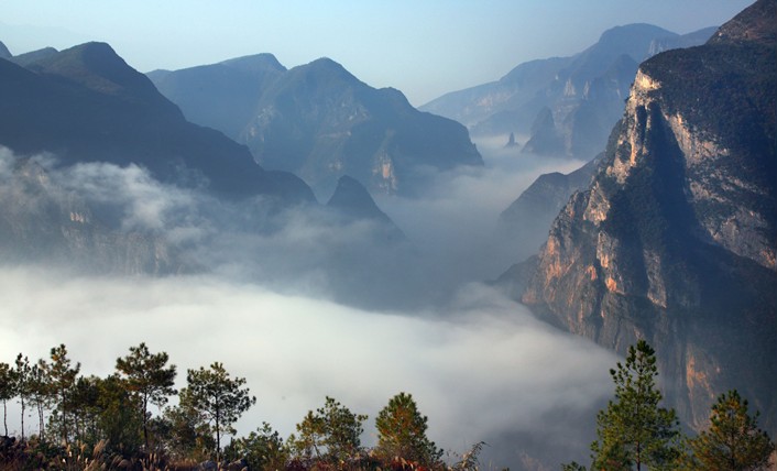 巫峽山脈位于重慶與湖北交界區(qū),自巫山縣城東大寧河起,至巴東縣官渡口止,綿延40余千米,北與大巴山相連,主峰烏云頂海拔2400米。巫峽山脈是中國地勢二、三級階梯的界線,西起四川盆地,東至長江中下游平原。