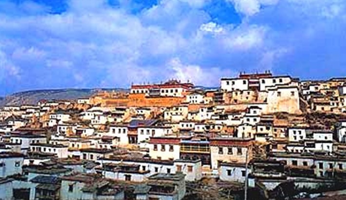 明代, 曾環繞大龜山壘石為城, 后被自然損毀。雍正二年(1742年),總督云貴部院中協、副總兵孫宏本奉命駐兵中甸,筑土城一座,斜掛于百雞寺東面山腰,周長360丈,高2丈2尺,厚4尺2寸,安設四門城樓,無垛口、炮臺,墻外無壕溝,縣衙門外,還建有兵房數十所,作為兵寓。乾隆二十四年(1759年),同知海米納重修。咸豐三年(1853年),麗江軍民府兼中甸撫彝府同知辛本柔重修西門城樓。同治八年(1869年),被都司張潤縱兵燒毀。重修不善,民國10年(1921年),縣長虞鋮將省府下拔恤金4000兩以工代賑,動員民眾構筑新城。新城在舊城墻覆木杰檐,蓋以草餅,以防風雨。城有城堡8座。城中大龜山山巔建有佛寺,下有井泉一眼,水源充沛。民房圍繞龜山而建,以石塊鋪筑衢道路。后由大中甸境土千總何榮光將城墻向外擴寬20余丈,新筑城墻80多丈。城中分金龍、倉房、北門三街,中心有一畝多空地稱四方街,為集市交易場所。1954年12月迪慶藏族自治州籌備委員會, 決定將迪慶藏族自治州人民委員會機關大院建大城北吉拉山腳,1957年9月13日迪慶藏族自治州成立前建成,從此,州、縣機關建設沿老城區至州人委的中德公路兩側鋪開,城區北移。1963年,建中共中甸縣委大院于龍潭河東側中段。1967年,迪慶州人民政府又重建大院于江克山前。1974年后城市建設加快,1989年后又批準機關職工、城鎮居民在城區建蓋住房,至1990年,縣城已建有長征、和平、建塘、紅旗、向陽、西環、進香、老州八條路,倉房、北門、金龍、文明、團結五條街,版權所有山東聊城聊之旅國際旅行社有限公司,轉載必究!五個居民新村。1997年建成環東路,2001年改造和平路。縣城占地(規劃面積)7.5平方公里(環東路以西,奶子河以南,滇藏公路以東,白塔以北)全鎮總面積1463.66平方公里。2000年,全鎮共有9465戶,32545年,其中, 藏族21977人,漢族3719人,納西族3881人,白族1638人,傈僳族656人,彝族210人,回族189人,苗族93人,普米族90人,壯、布依、朝鮮、侗、滿、土家、哈尼、傣、黎、土、佤、拉祜、水、怒、獨龍等15個民族共92人,少數民族人口占88.57%。