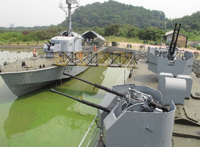游客還可以在園區近距離觀看63型水陸兩棲坦克、導彈快艇 、梟龍、轟-5、如人高的炮彈、魚雷導彈等各種軍事退役軍械。