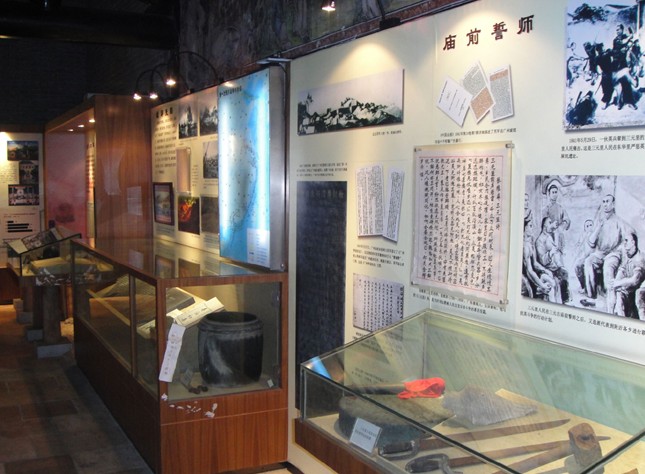 三元古廟建筑面積446平方米,二進(jìn)面闊3間磚木結(jié)構(gòu)建筑。館內(nèi)陳列三元里抗英的文物史料,系統(tǒng)地介紹三元里人民抗英斗爭的史實(shí),有三星旗、繳獲的英軍軍服、大刀長矛、伍紫垣印章等文物與資料。