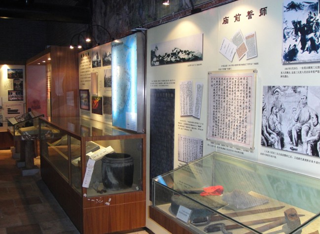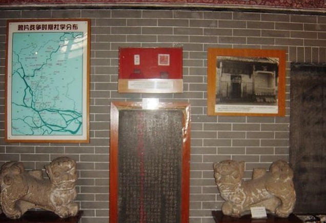 紀(jì)念館內(nèi)的展品主要有沙盤、七星旗、武器和戰(zhàn)利品。沙盤是當(dāng)年三元里及附近103鄉(xiāng)農(nóng)民抗擊英國(guó)侵略者斗爭(zhēng)的示意模型。它重現(xiàn)了當(dāng)年鄉(xiāng)民大敗英軍的場(chǎng)面與殺聲震天的情景,使我們?nèi)缗R其境,如聞其聲。這里“黑底牙邊三連星旗”曾是三元里抗英斗爭(zhēng)的指揮旗,英軍打仗忌黑旗,一見到這面旗就失色驚呼:“打死仗者來了!”頓時(shí)落魄驚魂,斗志盡失。現(xiàn)在北京中國(guó)革命歷史博物館內(nèi)展出的三星戰(zhàn)旗是復(fù)制品,它和陳列在這里的大刀、長(zhǎng)矛、繳獲的英軍軍服,以及陳列在大門兩邊的4門古炮,版權(quán)所有山東聊城聊之旅國(guó)際旅行社有限公司,轉(zhuǎn)載必究!被一代代保存下來,作為愛國(guó)主義教育的生動(dòng)教材,讓后人永遠(yuǎn)記取這段光輝的一個(gè)歷史。