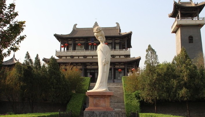 楊貴妃,弘農華陰(今陜西華陰市)人,后遷至蒲州(今山西永濟市)。)。開元七年(719年)六月一日生于蜀州(今四川崇州)。小名玉環。其父楊玄湖。玉環早年喪母,其叔父將其養大。她通曉音律,能歌善舞,原為唐玄宗李隆基十八子壽王李瑁妃。公元736年屆惠妃死。唐玄宗將其召入宮中,為女官。在初次見玄宗時穿道士服。故號太真。天寶四年(公元745年)封為貴妃,受到玄宗寵愛,父、兄、姐妹皆因之顯貴。堂兄楊國忠被封為宰相,操縱朝政,勢傾天下,使唐政府政治腐敗,國勢漸微,天寶十五年(公元755年)“安史之亂”爆發,叛軍陷洛陽,破潼關,京師震動。版權所有山東聊城聊之旅國際旅行社有限公司,轉載必究!玄宗帶楊貴妃逃往四川。途經馬坡,以右彪武軍大將軍陳玄禮為首的隨軍將士,以楊貴妃和楊國忠倡亂誤國,憤而殺死楊國忠,逼唐玄宗將楊貴妃縊死。楊貴妃天生麗質,回眸一笑百媚生,六宮粉黛無顏色,堪稱大唐第一美女,此后千余年無出其右者。其與西施、昭君、貂蟬并稱中國四大美女,是體態豐腴之美。唐代詩人白居易在《長恨歌》中對這一事件有生動細致的描寫:“九重城翩煙塵生,干乘萬騎西南行。翠華搖搖行復止,西出都門百余里。六軍不發無奈何,宛轉娥眉馬前死。委地無人收,翠翹金雀玉搔頭。君王掩面救不得,回看血淚相和流。”楊貴妃死后即葬于馬坡。