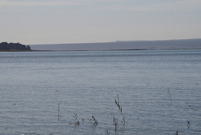 托素湖除了河道入湖出有稀疏的蘆葦外,和湖內(nèi)少量的浮游生物外,幾乎沒有水草,湖周圍零星生長(zhǎng)著白刺,怪柳,莎莎等植物。