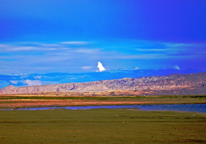 從烏蘭縣城向西南方向行車約80公里,茫茫戈壁深處便是一抹生機盎然的綠,如一磁場深深地吸引著過客!走近,驚訝!草原、羊群,蘆葦、鳥禽,蒙古包、藏獒,更是那清澈的湖水,給人以心靈上的震撼!