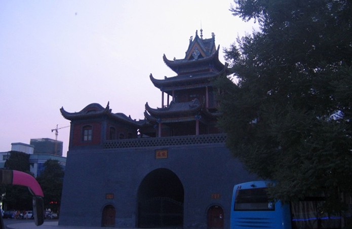 玉皇閣坐落在銀川興慶區解放東街和玉皇閣南、北街的交會處。此閣始建年代無從查考,從明代《弘治寧夏新志》府城圖上觀察,現玉皇閣的位置居明代府城鼓樓所在地。清乾隆三年( 1739年)毀于地震,重修后,稱為“玉皇閣”。清乾隆《銀川小志》載:“極崇煥軒敞,上供真武帝?!贝撕笏旆Q其為玉皇閣。