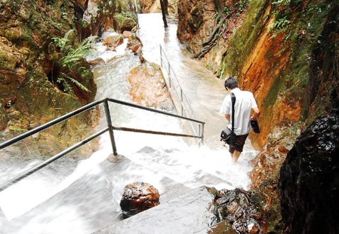 碧玉洞為峰間峽谷,兩邊怪石嶙峋、谷底狹徑崎嶇、洞中有玉巖珠瀑,聽玉石室、遇仙橋,垂云石、東天湖等景點。其中,玉巖珠瀑為西樵山最大瀑布。
