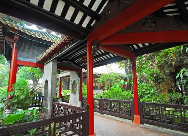 園內有大量裝飾性和欣賞性的陶瓷、灰塑、木雕、玻璃。園內妙聯佳句俯仰可拾,名人雅士音韻尚存,藝術精品比比皆是,令人流連忘返。園林藝術處理頗具匠心。園內疊石假山,曲水流觴,曲徑回廊,景趣盎然。銀杏千秋,百齡龍眼,玉棠春瑞,沙柳飄揚。閑步曲橋喜看金鯉碧波嬉戲;徐行花徑,好賞綠樹時花撲面。時而庭園內傳出裊裊弦歌,聽一粵曲,令人心清耳悅,如醉如癡。園內保存的一套清朝乾隆年間評定的“羊城八景”,就是一套僅存于世的清代舊羊城八景套色雕刻玻璃珍品,已被初步鑒定為國家一級保護文物。