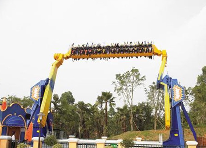 德國(guó) HUSS公司原廠進(jìn)口,版權(quán)所有山東聊城聊之旅國(guó)際旅行社有限公司,轉(zhuǎn)載必究!號(hào)稱“全球最大大擺錘”,塔高26米,最大擺幅240度,擺高42米,最高110公里/小時(shí),在天旋地轉(zhuǎn)之間,讓你目炫神迷,驚心動(dòng)魄!