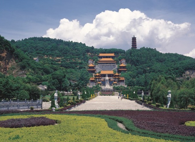 重建的南沙天后宮坐落于廣州市南沙大角山東南麓,面對煙波浩淼的伶仃洋。 1.5 公頃的廣場上,矗立著美麗善良的巨型天后圣像。建筑的特點則集北京故宮的風格和南京中山陵的氣勢于一體,其規模是現今世界同類建筑之最。這里草木蔥蘢,繁花吐艷,還有楊柳依依的池塘,高聳的南嶺塔,雅致的小山亭。曖日晴煙,涼風習習。樹上的鳥兒自由歌唱,花間的彩蝶翩翩起舞。一派祥和景象,令游客流連忘返。