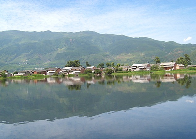 湖中有六村(張家登、清水塘、東登、中登、南登、海塘)一島,構成村內有湖、湖中有村的天然村湖畫景,環山倒影,碧水翠葦,風景如畫。 西湖距大理60多公里,處在從大理去麗江的途中。