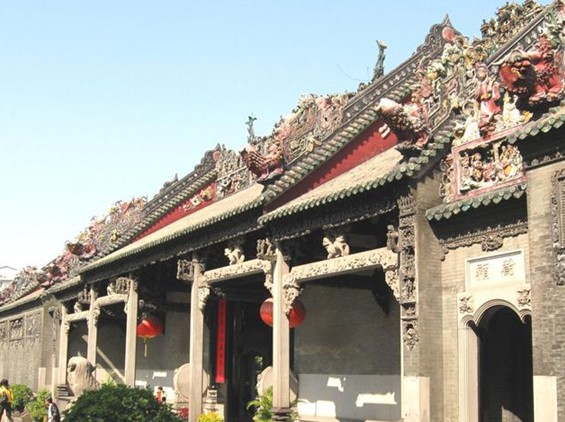 陳家祠堂坐落于廣東省廣州市中山七路。陳家祠堂又稱“陳氏書院”,始建于清光緒十四年(1888年),光緒二十年(1894年)落成,它是由清末廣東省七十二縣的陳姓聯合建造的,是廣東省著名的宗祠建筑。陳家祠堂的建筑結構可分為三軸、三進,建筑面積達8000平方米。祠堂的每進之間既有庭院相隔,又利用廊、廡巧妙地聯接起來,共有九座廳堂和六個院落,祠堂的整體布局上下對稱,殿堂樓閣,虛實相間,氣勢雄偉。“聚賢堂”是陳家祠堂中軸線的主殿堂,也是陳家祠整個建筑組合的中心,堂的正面是一座寬闊的石露臺,周圍用嵌有鐵花的石欄板環繞。祠堂建成之初時的聚賢堂是供族人集會之用,后來改作宗祠,兩邊的側房供書院使用。