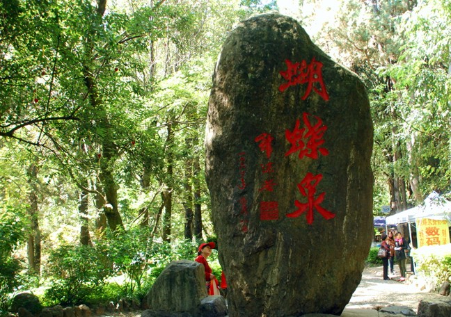 公園以“蝴蝶泉”而聞名。蝴蝶泉是一個方形潭,占地約50平方米左右,池中泉水清澈,泉底鋪著鵝卵石,水從白沙中涌出,還不時冒著氣泡,四周砌有大理石欄桿。“蝴蝶泉”三字為郭沫若所題。版權所有山東聊城聊之旅國際旅行社有限公司,轉載必究!泉被兩棵粗壯彎曲的百年合歡樹濃陰覆蓋。蝴蝶泉公園內種有鳳尾竹、圣誕樹等林木,泉后的松林、柏林、棕櫚林、茶林、杜鵑林、毛竹林,蝴蝶泉邊合歡樹、酸香樹、黃連木等本地特有的芳香樹種。據說以前每年農歷三四月,云弄峰上的百花齊放,泉邊的大合歡樹散發出一種清香,這種清香吸引著成千上萬只蝴蝶從四面八方飛來,在蝴蝶泉四周飛舞。蝶大如巴掌,小如銅錢,呈黃、紅、白等七彩,品種多達上百種。無數蝴蝶還勾足連須,首尾相銜,一串一串的從大合歡樹上垂掛至水面,五彩繽紛,甚為奇觀。