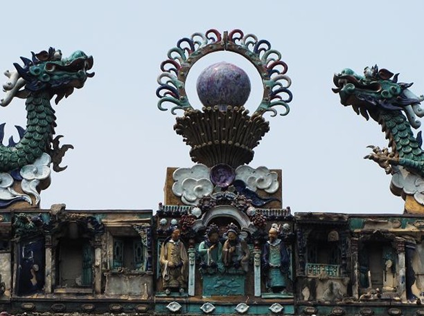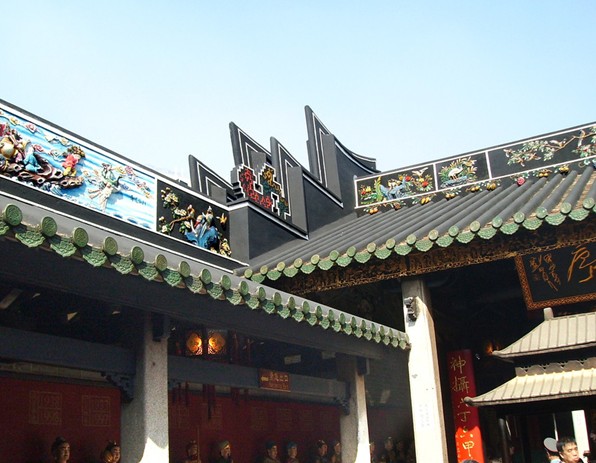 廟中的建筑雕飾,集丹青、木刻、磚雕、灰雕等各種藝術(shù)于一體,其雕飾物形象生動(dòng),栩栩如生,集中了嶺南古建筑藝術(shù)的精華,被譽(yù)為“桂殿蘭宮”。同時(shí),整座廟宇造型各異,有方形、八角形,也有覆盆狀的。柱子有石柱、木柱,柱的截面有方形、八角形、圓形,也有轉(zhuǎn)角柱。
