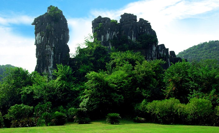 駱駝山位于桂林七星公園內。駱駝山即駝峰,在普陀山南麓,是地殼運動融蝕后的一塊殘石,原名酒壺山。廣西駱駝山在廣西桂林七星公園內,為桂林市名山之一,原名酒壺山。因其狀態酷似駱駝,遂名之。但它又酷似一把古式酒壺,因此又名壺山。有壺身、壺嘴,壺嘴下有塊石頭,恰似酒杯。