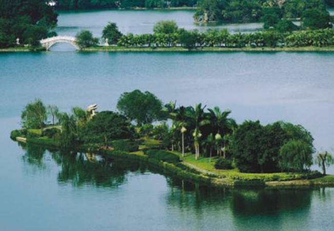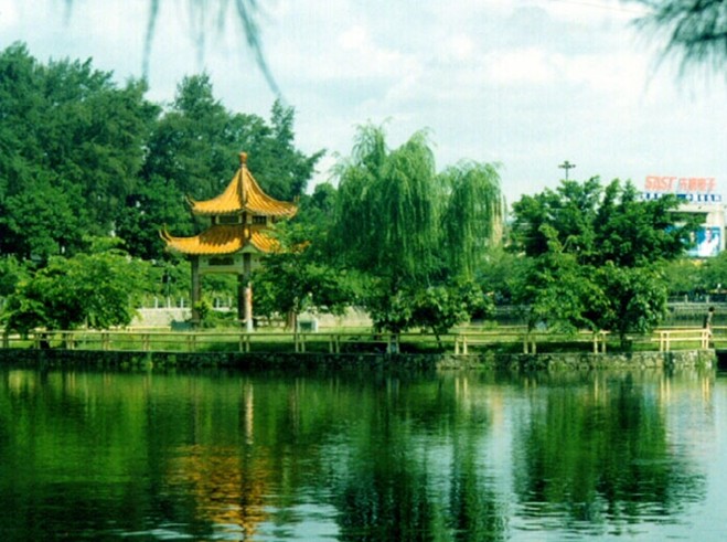 關于湖東東門塘的化容橋,有一個美麗的傳說。相傳有一位其貌不揚的姑娘,在桂山采桂花為生,一天她進城賣桂花藥,正好碰上皇帝派人在湖邊搭臺選妃,觀看的百姓人山人海,姑娘也擠進人群翹首觀望,誰知一不小心被擠落水里。奇怪的是當她被救起來后,變得如出水芙蓉,艷驚眾人,于是當場被選入皇宮。此后,湖上的這座橋就被叫作化容橋(也稱化龍橋)。當然這只是傳說,但也反映了河源的水水質之好,河源人的愛美之心自古有之。化龍橋南是曲折有致的飛鸞橋,橋上花草如茵。此橋的特別之處在于并不貫通兩岸,游人走到橋尾,正好身處湖心,坐在亭中,享受著柔和的微風,看湖水泛起陣陣漣漪,湖岸上的熱鬧就在眼中,卻并不鬧耳,很容易生出一種超然物外的感覺?;輼蛭鱾仍袃煽霉砰牛F在只剩下一棵。另一棵本有兩枝,版權所有山東聊城聊之旅國際旅行社有限公司,轉載必究!在朱德委員長逝世前無緣無故坍裂了一枝,而另一枝也在毛主席逝世前無緣無故連根倒塌了,不知道這是巧合還是天意。