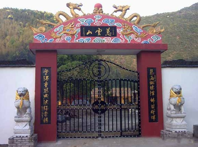 慈云禪寺坐落在距石臺縣城東北7公里處的慈云山中,寺旁有洞曰:慈云。此山、寺、洞在《石埭縣》中均有記載。據(jù)傳濟顛和尚曾云游此山寺,并于慈云洞中打坐修行。“山不在高,有寺則靈;水不在深,有洞則名”,由于慈云禪寺所處的特殊地理位置,四面環(huán)山,瑞氣氤氳,慈云洞中之水常年不斷,恰似游龍出洞護道流經(jīng)于寺前,真可謂是:“寺前流水聲聲笑,寺后青山步步高”之風水寶地、景致極佳,歷來素有“山中佛國”之美譽。