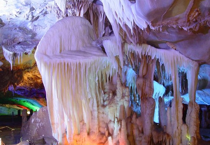 蓬萊仙洞,又稱羅漢洞,舊名沈家洞,位于安徽石臺縣貢溪鄉杉山下,是一個多層次、多階段、多堆積形態的大型溶洞。其位于石臺縣城東9公里,該地為晚唐著名詩人杜荀鶴的故鄉。洞全長3000多米,總面積達兩萬多平方米,呈立交結構,分天洞、中洞、地洞、下河四層,內有迎賓廳、探海長廊、東海龍宮、通明宮、迷仙宮、玉蟾宮、銀長廊、瑤池、南海和送客廳等景點。版權所有山東聊城聊之旅國際旅行社有限公司,轉載必究!洞內景觀奇特,洞外山清水秀,內外景致交融,確實令人陶醉。蓬萊仙洞是一個石灰巖溶洞。大約4.5億年前,這里是一片汪洋大海,后來,由于地球內部運動,海水下降,陸地崛起,溶蝕成現在的洞體和千姿百態的鐘乳石。據初步考證,洞體的形成距今已有9000多萬年的歷史。版權所有山東聊城聊之旅國際旅行社有限公司,轉載必究!地洞中有形態各異的巨石,有三條地下河。還有南海、東海龍宮、迎客廳、送客廳等景區。其中,以巨幅自然山水壁畫、白色透明的“羅紗帳”、碧玉般的海石花、潔白晶瑩的“天絲”等罩主為絕。洞中石壁上,有明代以來的題詠石刻多處。