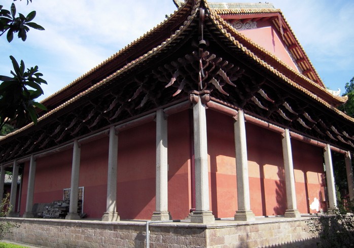 新會(huì)學(xué)宮又名文廟、孔廟。位于會(huì)城馬山西側(cè)。占地12189平方米,建筑面積3225平方米,學(xué)宮為廣東省重點(diǎn)文物保護(hù)單位,江門文物保護(hù)單位,始建于宋慶歷四年(1044年)。當(dāng)時(shí)是按山東曲阜孔廟圖案,因地制宜建造。學(xué)宮在元代被毀于兵火,明代重建。以后歷代均有重修。1956年除重修遺存建筑外,并在原遺址上,重建戟門(大成門)、東西兩庫(kù)、兩廡、兩廊和尊經(jīng)閣、“蹈和”、“履中”兩殿。