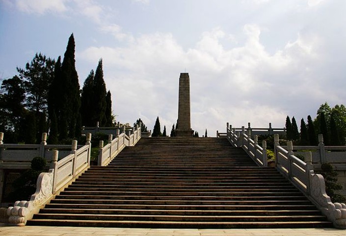 來(lái)到筆枝山頂,“八一”南昌起義軍三河壩戰(zhàn)役烈士紀(jì)念碑就展現(xiàn)在我們面前。這座山,居高臨江,地勢(shì)險(xiǎn)要,易守難攻,總面積達(dá)18萬(wàn)平方米,占據(jù)了筆枝山就等于控制了韓江的交通。溯汀江北上,可到福建長(zhǎng)汀、上杭;沿梅江西航可到江西贛南一帶;沿梅潭河?xùn)|往可到福建閩南的九峰等地;順韓江而下直通潮州、汕頭。舊稱“西通兩粵、北達(dá)兩京”,大家說(shuō)筆枝山的位置重不重要啊?“八一”起義軍三河壩戰(zhàn)役便是在這座山上激烈開(kāi)展的。為了紀(jì)念革命先輩的豐功偉績(jī)和這次戰(zhàn)役犧牲的烈士,1963年12月廣東省人民政府撥款興建了紀(jì)念碑,碑高15米,用35種規(guī)格的343塊密紋花崗石砌建而成。碑正面鐫刻著朱德同志的親筆題字:“八一”起義軍三河壩戰(zhàn)役烈士紀(jì)念碑。碑座上刻著第二十五師師長(zhǎng)周士第撰寫的碑文。如今“八一”起義軍三河壩戰(zhàn)役烈士紀(jì)念碑已被列為國(guó)家級(jí)革命烈士紀(jì)念遺址重點(diǎn)保護(hù)單位、省級(jí)文物保護(hù)單位,并成為梅州市、大埔縣愛(ài)國(guó)主義教育、革命傳統(tǒng)教育的基地。