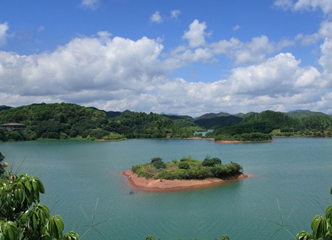 只要登上西湖豪華游艇、飛艇,作環庫游。隨著飛艇在平靜的水面上飛馳,就能看到的是大大小小三百多個庫灣,一個個浮在水面的荔枝孤島,兩邊山上,一片片翠綠茂盛的是荔枝林。