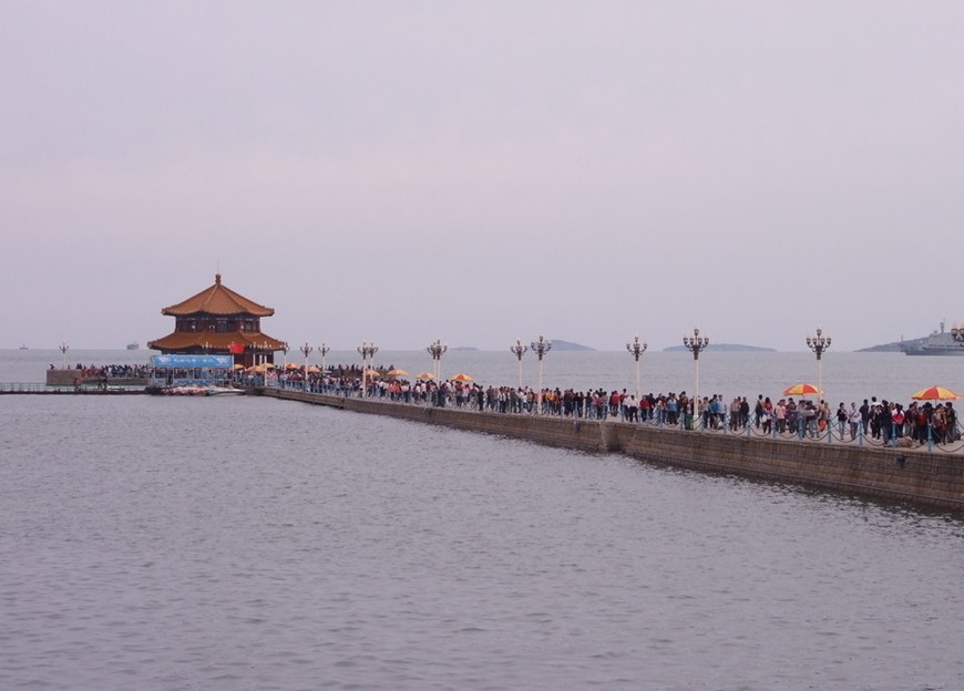 她位于青島灣中,與市內最繁華的中山路成一條直線,由海岸前伸入海,素有“長虹遠引”之美譽。