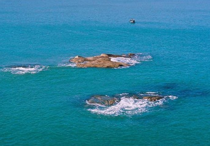 紅海灣與碣石灣交接處突入海的一個半島,素稱“粵東麒麟角”。又稱巖島,因為它是由礁巖構成的。海浪沖擊與自然風化的鬼斧神工,造就了奇形怪狀、橫豎各異的礁巖,巨浪撲來,激起沖天浪柱,海浪從空跌落,化作浪花朵朵,猶如“卷起千堆雪”。面對這浩瀚碧海,目睹這潮來潮去、排浪巨變,不禁感到豁然開朗,豪氣萬千,漸漸忘卻枯容,拋開煩惱,頓悟“忍一時風平浪靜,退一步海闊天空”的人生至理。