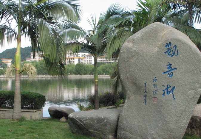 觀音嶺位于碣石鎮(zhèn)北與金廂交界之處,因嶺上有觀音禪淙堂(水月宮)而得名。嶺下海灘長達8km,海中距岸lOOm處水深才1,5m,距岸200m水深2m。沙白、水清、浪小,是一個理想的天然游泳海灘。嶺前奇山眾多,有周恩來、葉挺同志當年搶渡香港下海處的龍石,汕尾市境內最大的摩嶺刻“鎮(zhèn)海石”,明欽差大臣成大猷、鄭岳山刻“鎮(zhèn)海石”,“揚威止水”于鎮(zhèn)海石上。該處以“神、海、沙、石”兼?zhèn)涠劽袊鴷覅f(xié)會主席啟功先生題“粵東旅游黃金海岸”于石上。