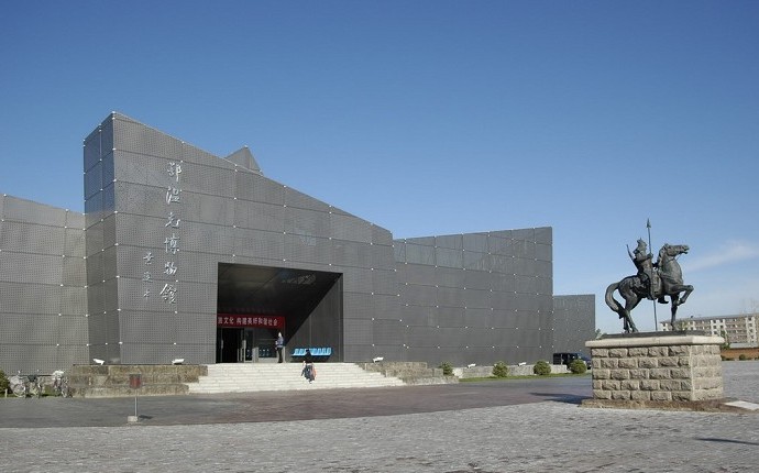 鄂溫克博物館正門前身著盔甲、手持武器騎在駿馬上的鄂溫克民族英雄海蘭察的銅像。揚蹄的駿馬、堅毅的表情顯示出了海蘭察將軍安內如鷹、攘外似虎的赤膽忠心和高超的武藝及鄂溫克人的驍勇善戰,保家愛國的精神。