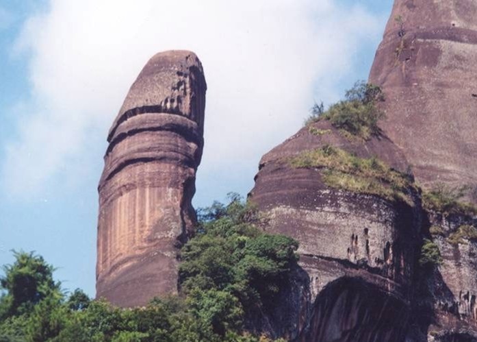 陽元石是一柱沖天巨石,其形狀不論是上部(頭部)、中間乃至下部,與勃起的男性生殖器(甚至皮色、血管)都十分形似。此石高28米,直徑7米,屬石柱類型。據(jù)專家考證,作為一個(gè)天然石柱,它從陽元山的大石墻分離出來已經(jīng)有30萬年歷史。稱為陽元石,是取其陽剛之陽,元?dú)庵饧搓杽傊畾庖病?/p>