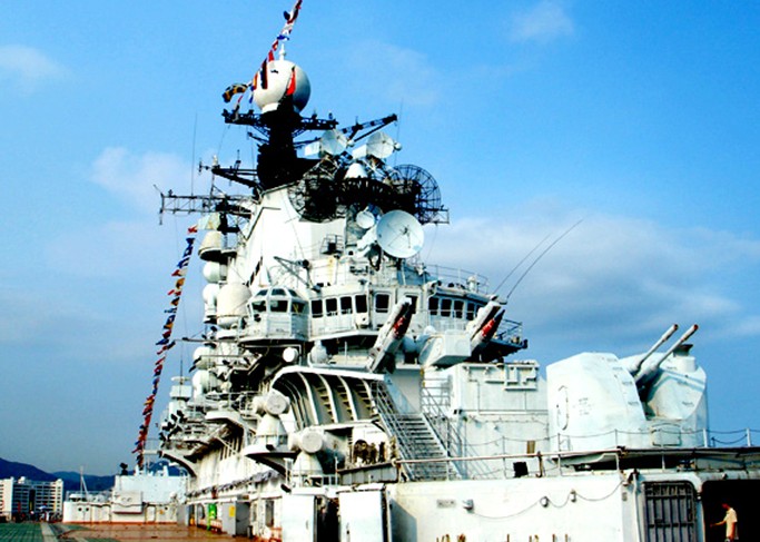曾記,飄揚(yáng)著前蘇聯(lián)海軍軍旗的明思克號(hào),以艦長(zhǎng) 273米的龐大身軀、3.6萬(wàn)噸的排水量橫沖直撞于遠(yuǎn)東海域,直逼與美國(guó)阿拉斯加相鄰的重要水上通道----白令海峽以及日本海、中國(guó)黃海和東海海域。每當(dāng)明思克駛出蘇聯(lián)太平洋艦隊(duì)司令部海參崴軍港,除航母自身配置的強(qiáng)大戰(zhàn)斗群外,在艦隊(duì)的不遠(yuǎn)處,版權(quán)所有山東聊城聊之旅國(guó)際旅行社有限公司,轉(zhuǎn)載必究!會(huì)適時(shí)出現(xiàn)美國(guó)以偵察機(jī)和潛艇警戒群組成的護(hù)航隊(duì)伍,真可謂聲勢(shì)浩大,不可一世。冷戰(zhàn)結(jié)束后,明思克退役。1993年該艦被賣至韓國(guó),1998年6月,被深圳明思克公司收購(gòu),并開(kāi)辟成“軍事題材”的旅游項(xiàng)目。