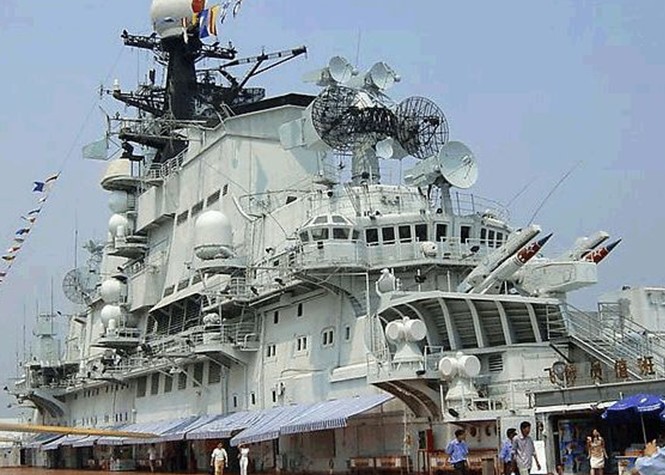 飛行甲板(第一甲板):艦首區(qū)有SS-N-12艦艦導(dǎo)彈,SA-N-3導(dǎo)彈,RBU- 6000反潛深彈,76mm火炮,SUW-N-1反潛導(dǎo)彈;艦橋區(qū)有多種雷達(dá)和電子戰(zhàn)武器;飛機(jī)區(qū)停放著1架前蘇聯(lián)米格-23殲擊機(jī),2架前蘇聯(lián)米-24 武裝直升機(jī)及強(qiáng)-5戰(zhàn)機(jī);艦尾有拖曳式場(chǎng)納1部,艦炮2門;另還有儀仗隊(duì)表演以及艦首高射機(jī)槍等。