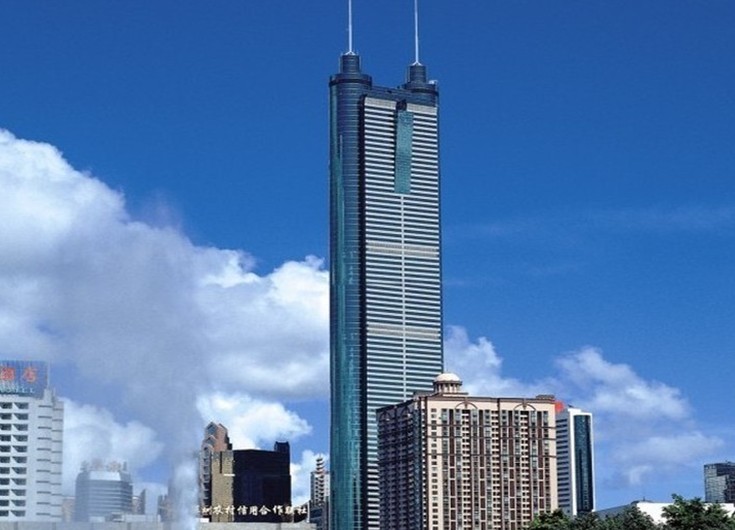 公司大樓位于深圳市羅湖區(qū)的深南東路、解放路與寶安南路交匯的三角地帶。地王大廈信興廣場(chǎng)由商業(yè)大樓、商務(wù)公寓和購物中心三部分組成。是深圳的重要標(biāo)志。
