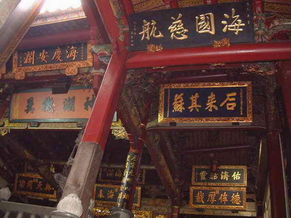 走進(jìn)臺南大天后宮時(shí),才發(fā)現(xiàn)大天后宮那富麗堂皇,威嚴(yán)顯赫的氣派,已極盡了宮殿建筑的豪華壯麗。由大門朝里望,透過三進(jìn)逐次升高的天井和房舍狹長的空間,可以遙見那香煙繚繞、金黃帷幕下的全身媽祖神像。廟宇堂皇壯觀,信徒眾多,香火鼎盛。由于受到歷代官府的整修和保護(hù),大天后宮內(nèi)文物保存較多。廟中神像佛像也多為名家雕塑,石雕、木雕的柱、窗、梁都有很高藝術(shù)價(jià)值。還有許多古碑、古匾、古聯(lián)等珍貴的文物,據(jù)說單單古匾就有200多塊,平時(shí)無法全部掛出來。最寶貴的是雍正皇帝所賜的“神昭海表”、咸豐皇帝的“德侔厚載”、光緒皇帝的“與天同功”等御筆匾。由此可見,大天后宮與普通天后宮、普通廟宇相比,簡直就有一個(gè)天上、一個(gè)地下的感覺。