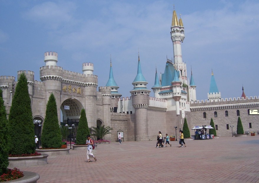 步入公園大門,迎面便是寬闊壯麗的意大利臺地園,然后順時針方向進入亞洲景區,首先見到日本的桂離宮,依次是中國園林清音境、萬里長城、莫高窟、應縣木塔,還有波斯波利斯宮遺址(伊朗)、婆羅浮圖(印度)、巴比倫門(伊拉克)、泰姬陵(印度)、仰光大金塔(緬甸)、吳哥寺(柬埔寨)、泰國大王宮;然后跨過悉尼鐵橋進入“澳洲”,可以觀賞毛利草屋(新西蘭)、悉尼歌劇院(澳大利亞);